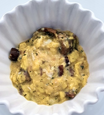 L’apéritif consiste en des quiches lorraines passées au four, en une terrine très expressive et en des tranches de rosette de Lyon. C’est la terrine qui met en valeur le beau Champagne Pommery Cuvée Louise 1989 vif, expressif et généreux, meilleur que ce que j’avais imaginé. Le message n’est pas extrêmement complexe, mais c’est un beau champagne de gastronomie.