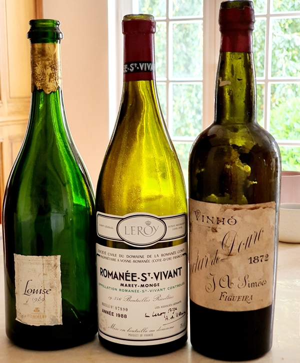 Ma fille aînée vient avec ses filles déjeuner à la maison. J’ai envie d’ouvrir une belle bouteille. Vers 9 heures, j’ouvre une bouteille de Romanée Saint-Vivant Marey-Monge Domaine de la Romanée Conti 1988 qui a un beau niveau de 3 centimètres sous le bouchon. Le bouchon sous la capsule est blanc. Il vient entier, d’un liège de grande qualité. Le premier nez, timide est un peu lacté, comme si les exsudations du haut de bouchon étaient du lait. Mystère.