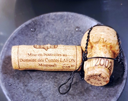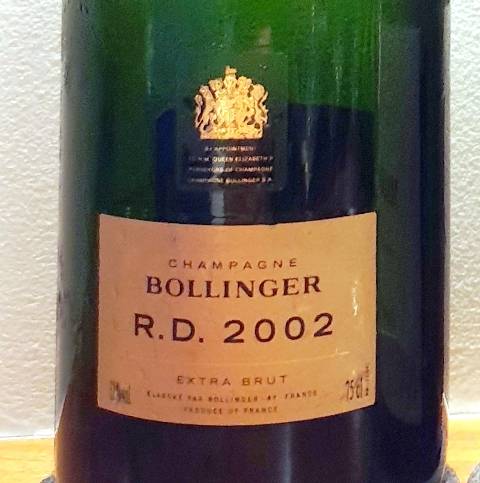 Nous commençons par un Champagne Bollinger R.D. 2002. Le champagne est évidemment très grand mais je suis fort gêné par sa bulle insistante. Ce midi j’avais bu un Laurent-Perrier 1981 sans bulle et délicieux. J’ai du mal à m’adapter à ce saut dans la jeunesse où la bulle est envahissante et limite mon plaisir, même si le champagne joue dans la cour des grands.