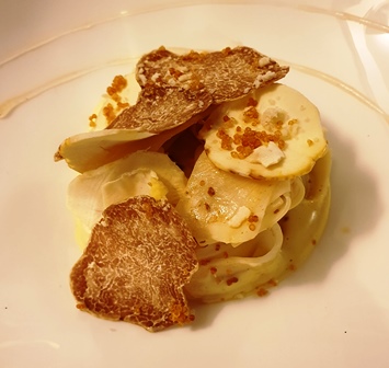 Il y a dans la cuisine de David Toutain une grande recherche des présentations qui fait penser à celles de René Redzepi du restaurant Noma. C’est parfois un peu compliqué, mais ce qui compte c’est la cuisine très précise d’un chef de talent. Le dîner à huit plats eut été un meilleur choix car nous avons Bipin et moi de lourds programmes. Ce furent d’agréables retrouvailles de la cuisine de ce chef.