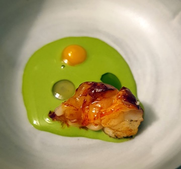 La cuisine de David Toutain est inspirée et de haute précision. Le plat que j’ai adoré, c’est l’anguille cuite avec une justesse extrême. C’est délicieux. Ensuite vient le homard remarquable. Mais pourquoi le présente-t-on avec la pince dans une coupelle devant soi et la queue dans une coupelle commune où les deux morceaux à se partager reposent sur des branches de pin. La présentation parfois confuse des plats rebute un peu. Ensuite vient le foie gras au goût exceptionnel. Le seul plat qui ne m’a pas convaincu est le lièvre à la royale selon la recette du sénateur Couteaux, car la crème ne fait pas ressortir la richesse de la viande au goût profond. Comme c’est une question personnelle je veux bien admettre que je n’ai pas raison, mais je n’ai pas été séduit.