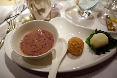 L’esprit est à la joie et surtout à la générosité. La cuisine chinoise est de grande qualité. Certains plats sont déroutants, comme les desserts, d’autres sont d’un charme rare comme le porc aigre-doux qui a créé un accord de première grandeur. L’hôtel est luxueux, le service est très attentif et efficace, dont Cédric, sommelier très à l’aise au milieu de cette débauche de grands vins.
