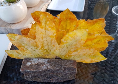 Comme pour les champagnes la carte des vins est dissuasive pour tout ce qui vient du groupe LVMH. Cheval Blanc est inaccessible ainsi que la plupart des Yquem. Même le vin chinois Ao Yun du groupe est tarifé dans du « hors-piste ». En accord avec Sarah je choisis un Gaja Sperss Langhe 2011 l’un des plus grands Barolos italiens fait à 95% de Nebbiolo. C’est en écrivant ce compte-rendu que je me rends compte du pur hasard qui a voulu que le vinaigre du plat soit aussi de Nebbiolo. Est-ce la raison de la pertinence de l’accord ?