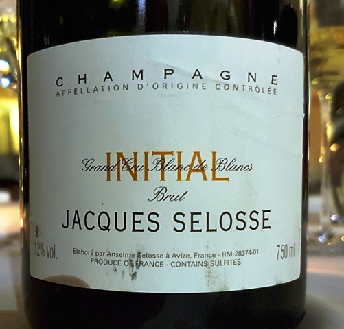 Le Champagne Initial de Jacques Selosse sans année a été dégorgé en octobre 2014. Le changement de niveau justifie la réserve que nous avions eue sur le blanc de noirs. De belle personnalité, typé, ce champagne est très plaisant malgré une légère amertume qui s’estompe sur les délicieux amuse-bouche, complexes et variés. Une petite tartelette aux fleurs comestibles de toutes les couleurs est un régal comme une huître présentée avec une mousse délicate, une tranche de lisette, jeune maquereau très goûteux, une olive verte mais présentée noire et légèrement fumée, un chips de fleur de courgette au parmesan ou un bouillon délicieux.