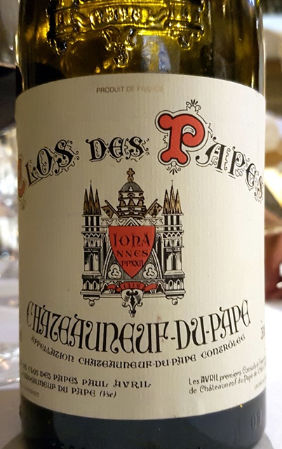 Pour le veau, mon ami suggère que nous prenions un rouge, malgré la présence de câpres mais on nous dit que ces câpres sont très discrètes ce qui est vérifié. Le Châteauneuf-du-Pape Clos des Papes 2009 est un vin enthousiasmant. Il a la jeunesse, un fruit puissant, une richesse extrême, mais tout est d’un équilibre et d’une élégance rare. C’est un vin de grand plaisir, racé, vif mais aussi accueillant.