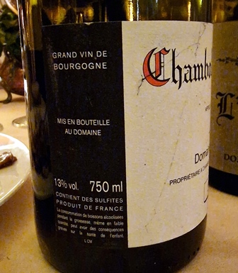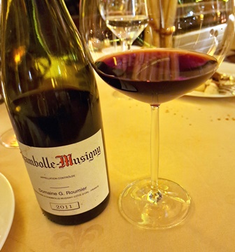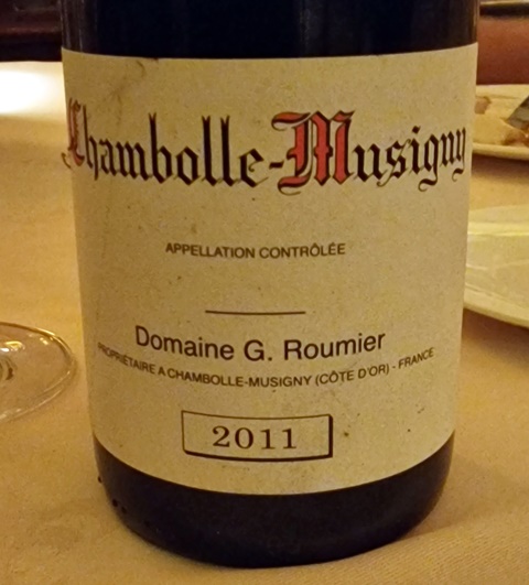 La volaille est très bien traitée et les accompagnements sont très adaptés au plat et au vin. Le Chambolle-Musigny Roumier 2011 est tout en subtilités. Il a ce que la Bourgogne peut donner de mieux. Certes il n’a pas la magnificence d’un Musigny, mais il est si délicat qu’il procure un plaisir extrême. Quelle région pourrait donner un charme aussi délicat ? Il y en a, bien sûr, tant il y a de régions qui recèlent des trésors. Ce vin a la politesse d’un grand vigneron.