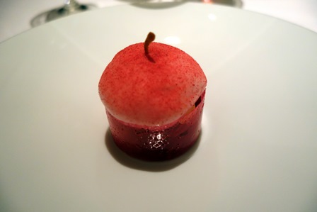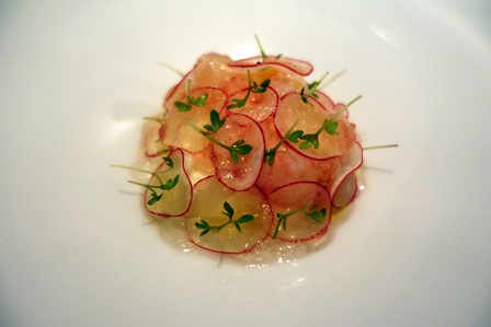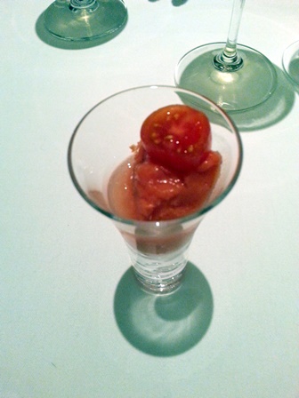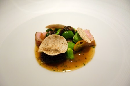 Pour accompagner ce programme qui n’est pas annoncé lorsqu’on se met à table, j’ai choisi le Champagne Substance Jacques Selosse dégorgé en 2015. Guillaume Guedj nous signale qu’à une autre table un couple d’américains ont commandé le même champagne. Nous discuterons avec eux en fin de repas et découvrirons de nombreuses amitiés communes dans le monde du vin.
