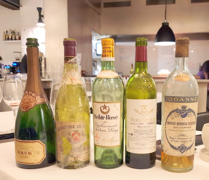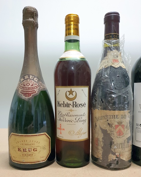 Mon classement est : 1 – Châteauneuf Domaine du Pégau 1985, 2 – Krug Grande Cuvée étiquette crème, 3 – Kebir Rosé années 40.