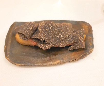 L’ouverture n’ayant pas pris trop de temps, je compose avec le chef Ken et son équipe le menu en tenant compte des vins. Lumi, la directrice du restaurant, me suggère le menu avec truffe, mais la truffe, si elle est « accompagnante », ne me tente pas. Si nous prenons de la truffe, ce doit être pour elle seule. Ken va faire un toast à la truffe qui sera servi seul, entre deux plats et non en accompagnement.