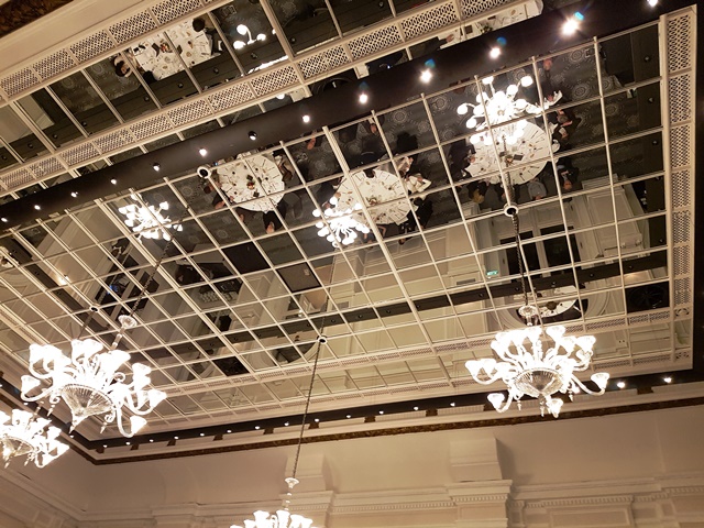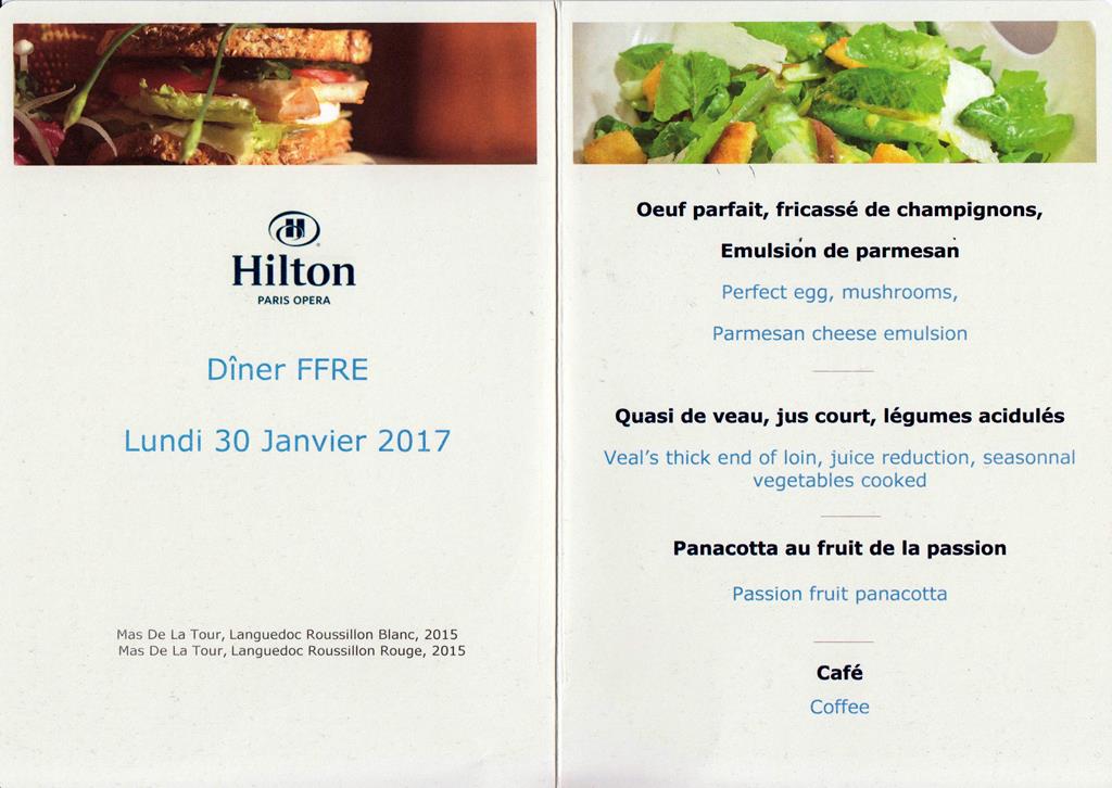 La Fédération française pour la recherche sur l’épilepsie (FFRE) organise chaque année un dîner caritatif avec une vente aux enchères. Le dîner se tient dans un grand salon de l’hôtel Hilton Paris Opéra où je me rends pour la première fois. Les salles sont belles, hautes de plafond et le Grand Salon qui sert de bar a des décorations magnifiques avec des fresques qui sont classées. Ayant livré les lots que j’offre avec beaucoup d’avance, j’ai le temps de prendre un apéritif au bar.