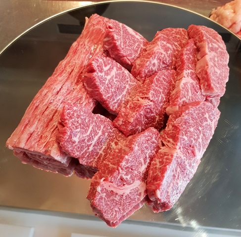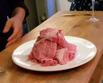 Un dimanche à 19 heures se tient au restaurant Pages le dîner de la « Wagyu Mafia ». D’après ce que j’ai compris la Wagyu Mafia est un groupe de restaurants qui sont spécialisés dans la viande de Kobe de très haute qualité. Pour faire connaître leurs produits, ils font chaque année un tour du monde. L’an dernier le tour du monde avait commencé au restaurant Pages et cette année leur 16ème tour du monde se finit en cet endroit.