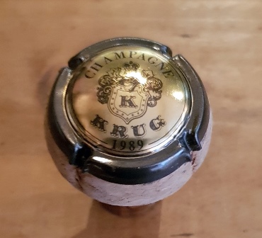 Je fais servir le champagne que j’ai apporté, un Champagne Krug 1989. Ce champagne est d’une noblesse rare. Il brille au firmament des champagnes et il est nettement meilleur que le souvenir très positif que j’en avais. Tant mieux. On a du mal à imaginer qu’un champagne si jeune et vif ait 29 ans. Ce qui est intéressant, c’est que les trois champagnes, tous différents, peuvent trouver leur zone d’excellence. Le plus gastronomique est le Krug, mais chacun a sa part de succès.