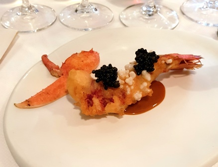 On offre à chacun des participants du dîner une coupe de Champagne Dom Pérignon 2009. J’aime beaucoup ce champagne qui est dans la droite ligne de ce que Dom Pérignon doit être, noble, complexe, accueillant et joyeux. A ma table il y aura l’ami avec lequel j’avais déjeuné ici il y a cinq jours et mes deux filles que j’ai invitées car le restaurant m’avait signalé que les réservations n’étaient pas complètes. J’ai fait plaisir au restaurant tout en me faisant le plaisir d’avoir mes filles près de moi.