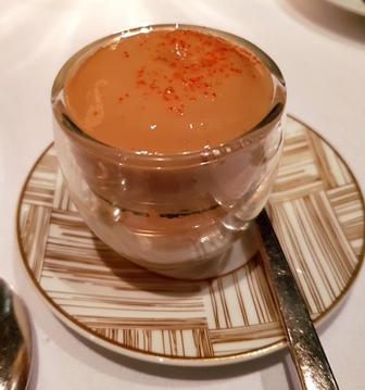 La deuxième bouteille est nettement meilleure, le vin est pur et cristallin, mais on est quand même encore loin de ce que doit être un Corton-Charlemagne de Coche-Dury, une bombe olfactive et aromatique. Le plat de crevette avec des légumes verts est absolument délicieux et nous nous faisons avec Tomo la remarque qu’il est impensable que le Taillevent n’ait pas trois étoiles.