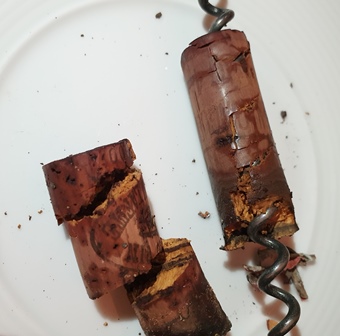 J’ouvre une demi-bouteille qui a la forme d’une bouteille de porto. Le nez m’évoque un porto, ou à tout le moins un vin muté doux. Florent est dubitatif sur mon estimation mais nous ne goûtons pas les vins pour garder l’efficacité de l’oxygénation lente.