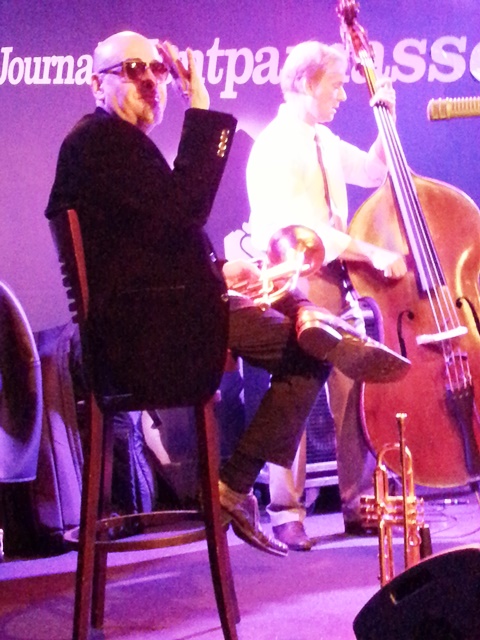 Stéphane Belmondo joue du bugle et de la trompette avec une précision de notes qui est remarquable. Avec lui, un contrebassiste Thomas Bramerie qui vit avec son instrument, le couve, le remue, et en tire des solos de très haut niveau. A la guitare électrique Jesse Van Ruller, sans jamais vouloir montrer sa virtuosité, a fait un festival de pertinence et de symbiose avec la contrebasse. Si les harmonies sont souvent assez proches entre les différents morceaux, à aucun moment nous n’avons perdu une note de ce concert passionnant.