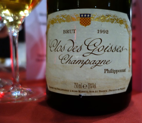 J’ai apporté deux champagnes de 1992. Le Champagne Bollinger Grande Année 1992 est dévié, plat avec une acidité inhabituelle. Mais heureusement, le tartare d’algues furieusement épicé va agir comme une gomme magique et replacer le Bollinger sur sa trajectoire. Il est loin d’être parfait mais devient courtois.