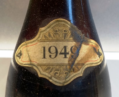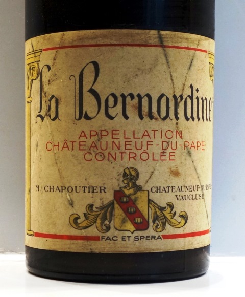 Alors, la bouteille qui doit être le clou de ce repas sera-t-elle marquée par la même malchance ? Lorsque j’ai ouvert la bouteille du Châteauneuf-du-Pape La Bernardine Chapoutier 1949, le nez montrait une petite acidité sous-jacente. Au service, elle a disparu et le parfum est royal, opulent et riche. En bouche ce n’est que du bonheur. Le vin emplit la bouche de façon gourmande. On a l’impression de croquer de gros grains de raisins bien rouges. La mâche est large, le vin a une belle râpe de vin rhodanien, et tout en lui est solaire. On sait que l’on boit un vin qui a de l’âge, puisque les saveurs sont un peu fumées ou léchées de tisanes, mais le vin, par sa force de caractère n’est en aucun cas un vin vieux. Il n’est que de plaisir. Ce vin est vraiment émouvant car il représente une forme joliment évoluée d’un vin rhodanien plus que d’un Châteauneuf-du-Pape.