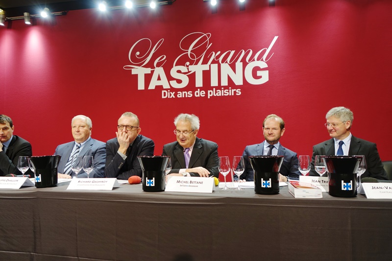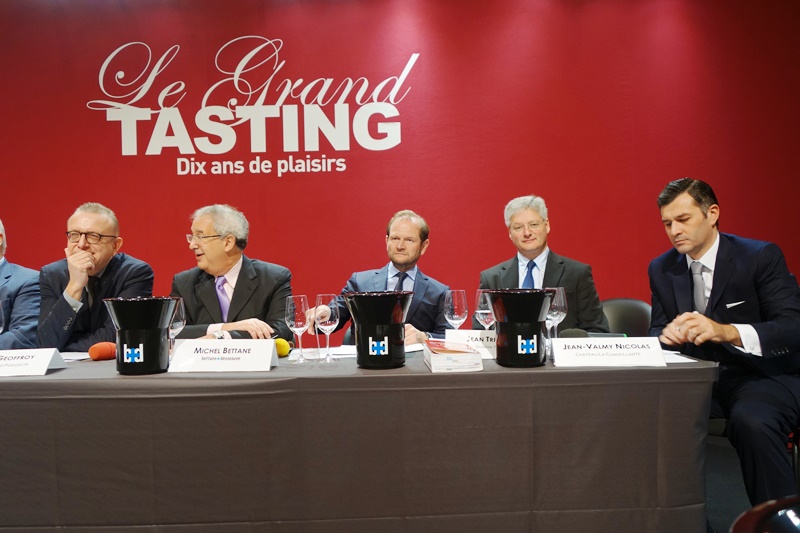 La Master Class « le Génie du Vin » permet de goûter des vins sélectionnés par Michel Bettane et Thierry Desseauve qu’ils considèrent comme faisant partie de l’élite du vin français. D’habitude, il y a toujours un ou deux vins étrangers ajoutés, mais aujourd’hui, pour le 10ème anniversaire, la dégustation sera franco-française. Il s’agira de vins de 2005 sauf pour le premier et le dernier vin.