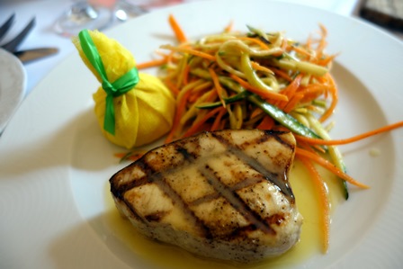 Le premier repas a été accompagné par un Champagne Drappier Signature, Blanc de Blancs sans année très agréable, pur, franc, net et sympathique. Le service est attentionné.