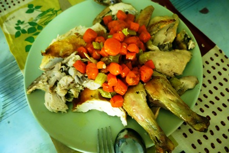 Dans l’avion on nous donne une luxueuse brochure indiquant les plats que l’on peut choisir. C’est un chef MOF (meilleur ouvrier de France) et Bocuse d’Or qui a élaboré un filet de volaille rôti moelleux, carottes et céleri, sauce suprême au cumin. Un tel parrainage nous pousse à prendre ce plat, mais le problème de la gastronomie dans les avions, c’est la gestion des températures. Les caissons de plats passent de températures très fraîches à des réchauffements trop rapides. Le résultat est un plat quasiment immangeable. C’est dommage car sur le papier on encense ce plat avec des propos dithyrambiques. Au contraire, un simple plat de pâtes au curcuma, proposé au deuxième repas, se mange simplement, avec plaisir.