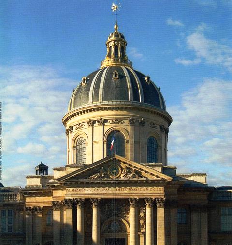 L’ Institut du Quai Conti a une façade en forme d’arc dont le Pont des Arts serait la flèche, la science tendant ses bras à l’amour. C’est en traversant la petite cour pavée que l’on pénètre dans ce temple de l’excellence française. Après avoir montré patte blanche, on traverse une cour carrée, elle-même pavée, de toute beauté. Il faut gravir les marches de deux étages d’un escalier à deux montées symétriques pour accéder à la Grande Salle de Séances. Et là, on reste sans voix. De magnifiques sculptures très expressives représentent nos hommes illustres : Corneille, Racine, Molière, La Fontaine voisinent avec des dizaines de savants dont Monge, qui a créé l’Ecole Polytechnique, attire particulièrement mon regard. On sent dans cette salle que tout le pouvoir imaginatif, inventif et créatif français a bouillonné, phosphoré, inventé, pour la plus grande gloire de notre pays.
