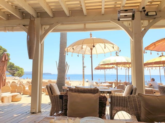 Nous avions été si contents d’avoir découvert le restaurant L’Hemingway à La Londe des Maures que nous avons réservé la même table pour deux jours plus tard. La météo, qui a fait d’incroyables progrès depuis l’observation par satellites, n’a pas prévu le sirocco qui va couvrir la plage de La Londe avec des pointes de 44°. Heureusement le site est bien agencé et de beaux ventilateurs tropicaux atténuent l’effet de la chaleur. Je prends des Dim Sum délicieux et un thon cuit comme il convient.
