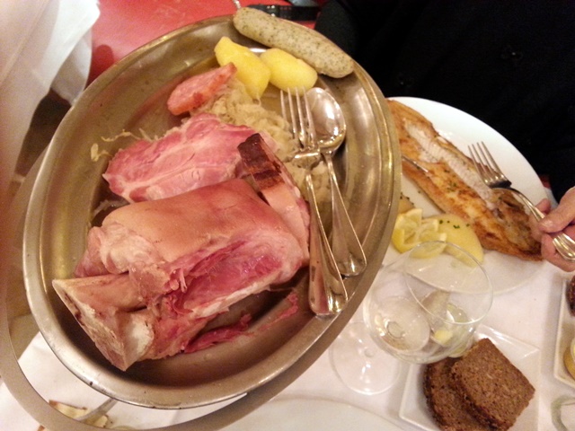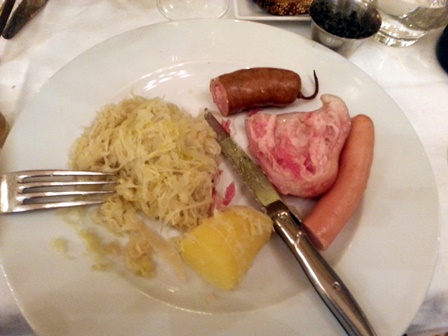 Venir à une comédie musicale américaine juste deux semaines après le terrible drame du Bataclan ne laisse pas indifférent, aussi, en sortant du théâtre, l’envie de croquer des huîtres est impérative. Nous allons à la Brasserie l’Européen, juste en face de la Gare de Lyon, où la décoration aurait tout à envier aux décors du Châtelet. Les gens qui ont agencé le lieu ne devraient jamais avoir le droit de s’appeler décorateurs. Mais peu importe, l’ambiance est très brasserie, le service est attentif et compétent. Nous goûtons de belles huîtres, ma femme prend une sole et je fais une folie en prenant une choucroute royale. Le Champagne Dom Pérignon 2004