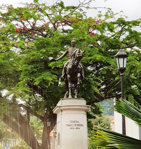 le palais bolivar et un Christ qui a le geste du torero qui montre les deux oreilles qu’il vient d’obtenir