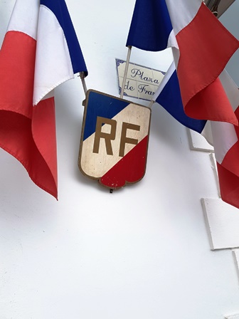 la porte de l’Ambassade de France et la place où trône un coq sur une obélisque