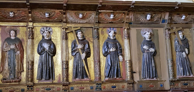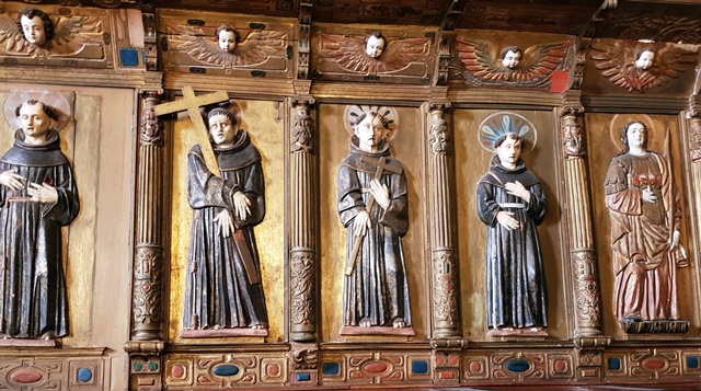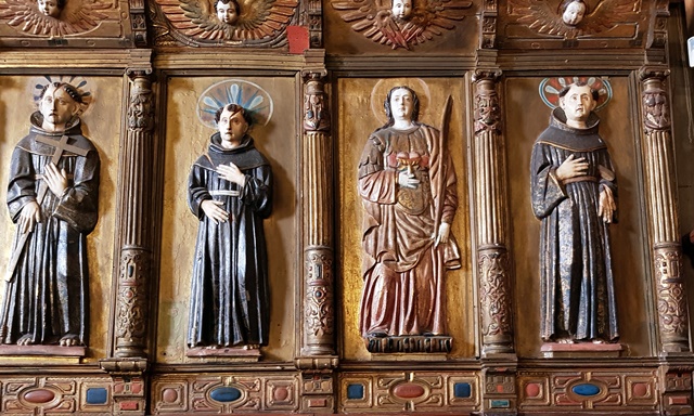 Tour du monde – Quito – l’Église Saint François d’Assisejeudi, 16 novembre 2017 la porte d’entrée (une d’elles) le patio l’église ne peut être vue que de la mezzanine car il y a un office les stalles des saints sont d’un réalisme particulier le musée des peintures sur marbre montrant la vie de la Vierge Marie