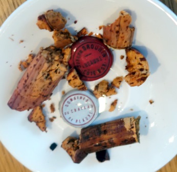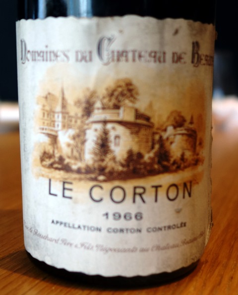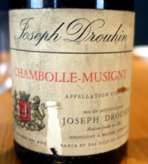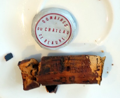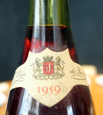 Les deux bourgognes que j’ai apportés sont Le Corton Domaine du Château de Beaune demi-bouteille 1966 et un Chambolle-Musigny Joseph Drouhin 1959. Les deux bouteilles ont des niveaux à deux centimètres sous le bouchon ce qui est parfait pour des vins de cinquante ans et plus. Le nez du Corton respire la Bourgogne. On a l’impression d’être en cave. Le nez du Chambolle a une minuscule pointe de bouchon que l’on ne retrouve pas dans le milieu de bouche et seulement un peu en fin de bouche. Avec les plats, cela n’est pas marquant et va même complètement disparaître pour la deuxième moitié de la bouteille.