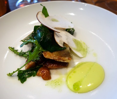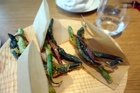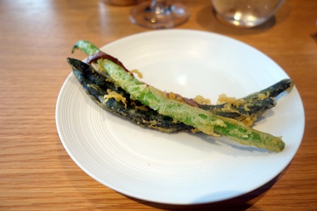 Le chef a un incontestable talent et tous les plats sont tellement équilibrés qu’il est difficile de dire que l’on a préféré un plat à un autre. Tout est bon, raffiné, serein. S’il fallait désigner un gagnant, ce serait le beignet d haricot avec l’anchois, dont le croquant est d’une exactitude absolue.