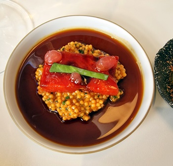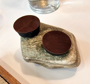 Mes petites-filles ont adoré le repas, allant d’émerveillement en émerveillement. Pour ma femme et moi qui avons mangé des plats quasiment identiques sur les trois repas, aucune lassitude, aucune sensation de « déjà vu », car nous sommes enthousiastes du génie du chef et de sa créativité incroyable.