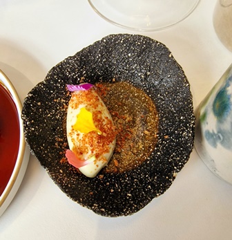 C’est curieux que lors des trois repas nous avons pu remarquer des différences de prestations très importantes pour trois vins : le Champagne Billecart-Salmon Cuvée Nicolas François 2002 dont une bouteille était moins bonne, les champagnes Marguet dont une est moins brillante, et le Volnay dont une n’a pas le niveau. Est-ce une coïncidence ou un problème de cave, je ne saurais le dire mais cette conjonction est inhabituelle.