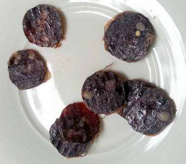 Saucisson de Wagyu façon chorizo, saumon, saumon fumé, tarama au corail d’oursin, œufs de saumon, harengs marinés, c’est le produit des courses de mon fils ainsi que quelques macarons de Pierre Hermé. Les goûts marqués ne sont pas les amis du champagne qui se boit seul avec gourmandise.