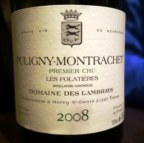 Le domaine fait aussi des blancs et nous buvons maintenant le Puligny-Montrachet Les Folatières Domaine des Lambrays 2008. Le nez est riche et généreux. En bouche il manque un peu d’ampleur, mais ça ne dure pas. Il a un beau finale gourmand. La persistance devient extrême.