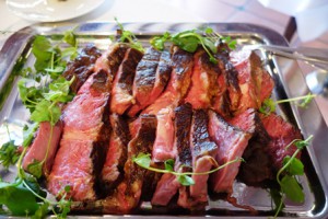 Mes convives sont de solides mangeurs car nous commandons homard et côte de bœuf. Les portions sont prévues pour des Gargantuas. Thierry fait ajouter un rouge de la carte des vins du lieu car il l’a bu récemment et apprécié.