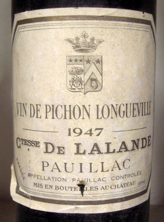 Château Pichon-Longueville Comtesse de Lalande 1947 (la capsule est une oeuvre d’art)
