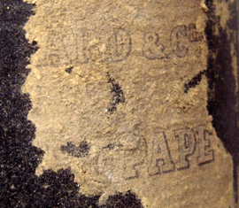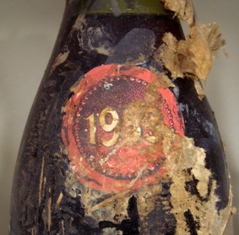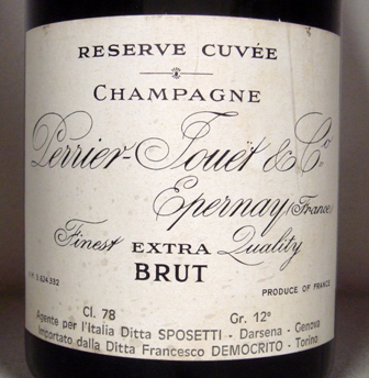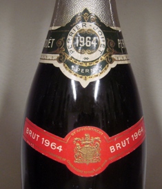 Champagne Perrier-Jouët 1964 (on note l’inscription italienne, qui ne signifie pas forcément que le vin est allé en Italie)