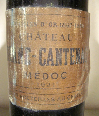 Château Brane-Cantenac 1921 (on note la mention de "Berger" sur la capsule)