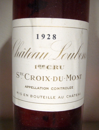 Château Loubens Sainte Croix du Mont 1928 (embouteillage récent d’une bouteille achetée à la propriété)