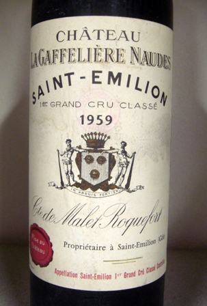 Château Sigalas Rabaud 1959 (bouteille sans étiquette dont on voit l’année en soulevant les jupes !)