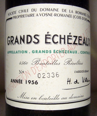 Parce que ça me faisait plaisir, j’ai rajouté un vin : Grands Echézeaux Domaine de la Romanée Conti 1956