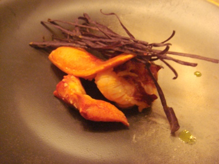 Homard rafraîchi à la pistache (beau comme un tableau, mais je n’ai pas photographié la pistache, hélas !)
