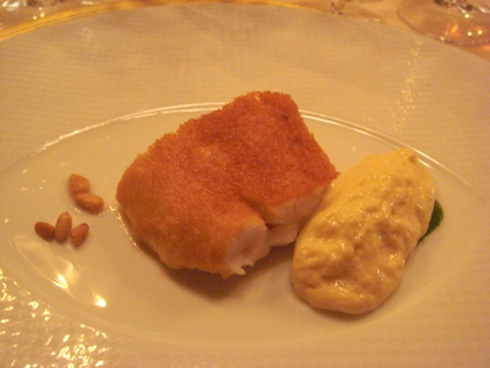 Gratinée de sole côtière aux noix et amandes fraîches (à gauche, les petits pignons que j’ai demandé que l’on ajoute)
