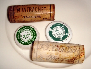 Les beaux bouchons des deux bourgognes blancs et le bouchon de l’Yquem 1967