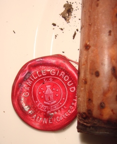 Le très beau bouchon de Lafite 1943 et le bouchon très sain du Nuits-Saint-Georges Camille Giroud 1928