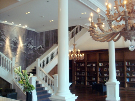 Vingt minutes avant l’heure dite, je pénètre dans la grande salle décorée de rouge et de noir de la Maison Boulud qui nous est affectée. La table est ovale, comme Ignace Lecleir m’avait opportunément proposé et Desmond est déjà en grande conversation avec des personnages importants de l’Etat chinois ou de la région pékinoise. Nous devions être douze, ce qui est la limite haute acceptable pour mes dîners, nous devions ensuite être onze annoncés hier, mais nous serons en fait dix dont un arrivera fort tard. Les treize vins prévus pour douze deviennent pléthoriques pour dix. Courage messieurs. Je dis messieurs mais nous compterons aussi une femme, personnage important puisqu’elle est responsable de la gestion d’espaces et de patrimoines de la ville de Pékin. Il y a un français, qui fut le trait d’union entre Desmond et moi, un autrichien qui vit à New York, Desmond, et six autres chinois dont deux seulement parlent anglais. Je suis obligé de recourir aux services de Desmond, mais aussi de la charmante femme pour me faire comprendre. Contrairement à la veille, où Li Wei multipliait en chinois la longueur de mes phrases par un facteur dix, Desmond les divise par un facteur de même ampleur. Lorsque je fais un commentaire dont l’urgence me parait incontournable, suis-je traduit ou non, l’histoire ne le dira pas.