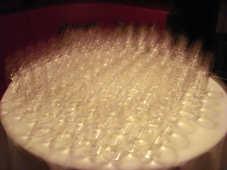 Les verres prêts à être utilisés et les verres utilisés, en fin de repas